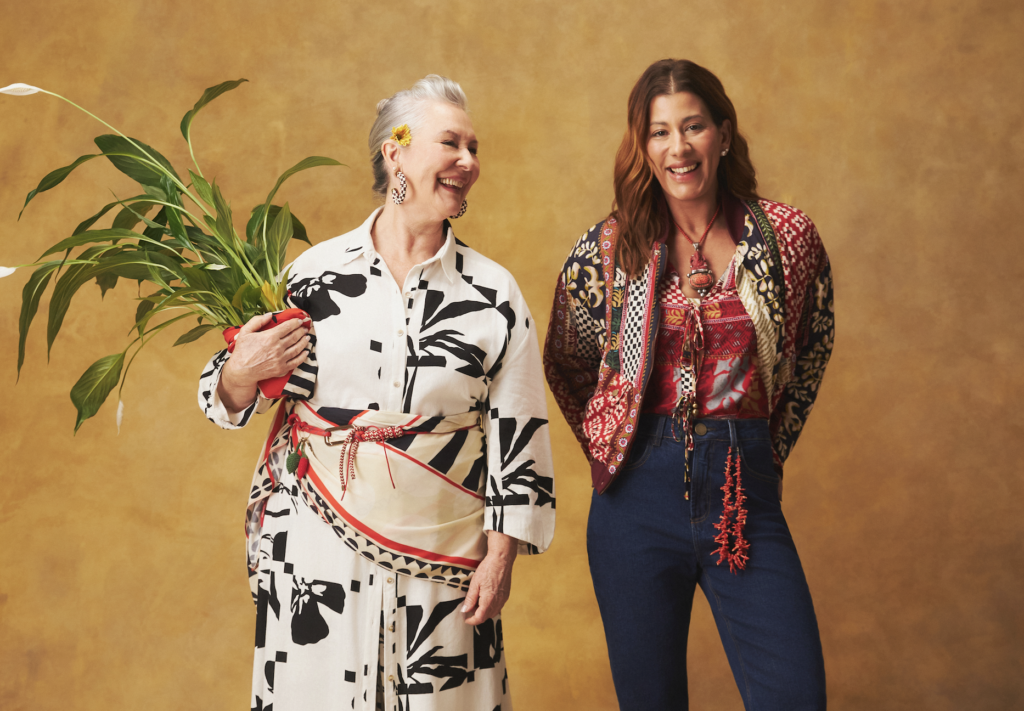Lado a lado, Flora Camolese e Zazá Piereck, Angelina Aquino e Maria das Graças, e Manu Bragança e Elisabeth Bragança vestem looks que traduzem suas personalidades e estilos de vida, dando forma à troca simbólica e visual que aparece na campanha. A partir da ideia de um armário compartilhado, elas transitam entre peças, referências e atitudes.